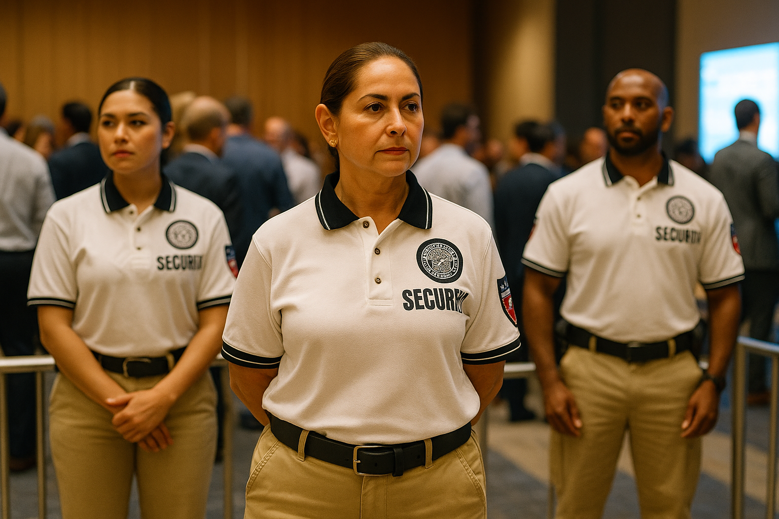 Uniformed security personnel strategically placed to ensure crowd safety and event flow.